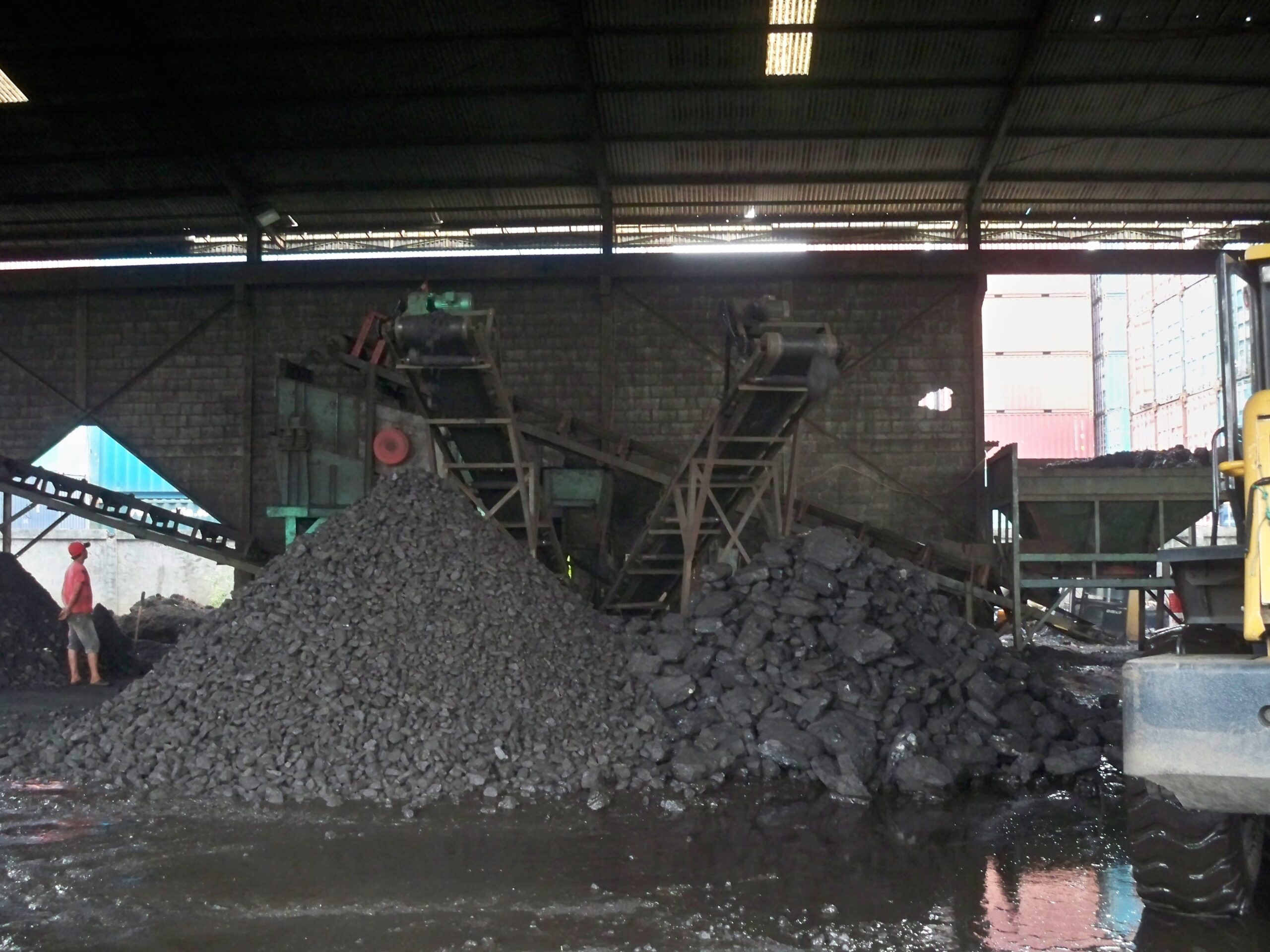 Kedua, karakteristik material batubara yang akan ditangani. Tumpukan batubara di lokasi menunjukkan material “Run-of-Mine” (ROM), yaitu batubara hasil penambangan langsung yang belum diolah. Material ini memiliki distribusi ukuran yang sangat bervariasi, dari bongkahan besar (lump) hingga partikel halus (fines). Bongkahan besar dapat menyebabkan kerusakan akibat benturan (impact damage) pada belt di titik pemuatan, sementara partikel halus dapat menyebabkan masalah debu dan menempel pada komponen conveyor. Sifatnya yang abrasif juga menuntut pemilihan belt dan liner dengan ketahanan aus yang tinggi. Selain itu, kadar air material yang mungkin tinggi dapat membuatnya lengket dan sulit ditangani, berpotensi menyebabkan penyumbatan di chute dan penumpukan material di roller.