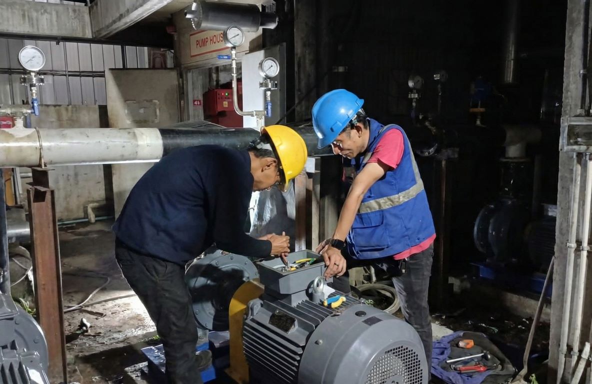 Setelah instalasi mekanikal selesai, fokus beralih ke tahap electrical wiring dan commissioning. Tim teknisi elektrikal kami melakukan terminasi kabel daya ke motor pompa dan kabel kontrol ke panel, memastikan semua koneksi kencang dan terisolasi dengan baik. Sebelum sistem dinyalakan (energized), serangkaian pengujian pra-komisioning wajib dilakukan, termasuk pengecekan rotasi motor dan pengukuran tahanan isolasi (Megger test) untuk mencegah risiko short circuit.