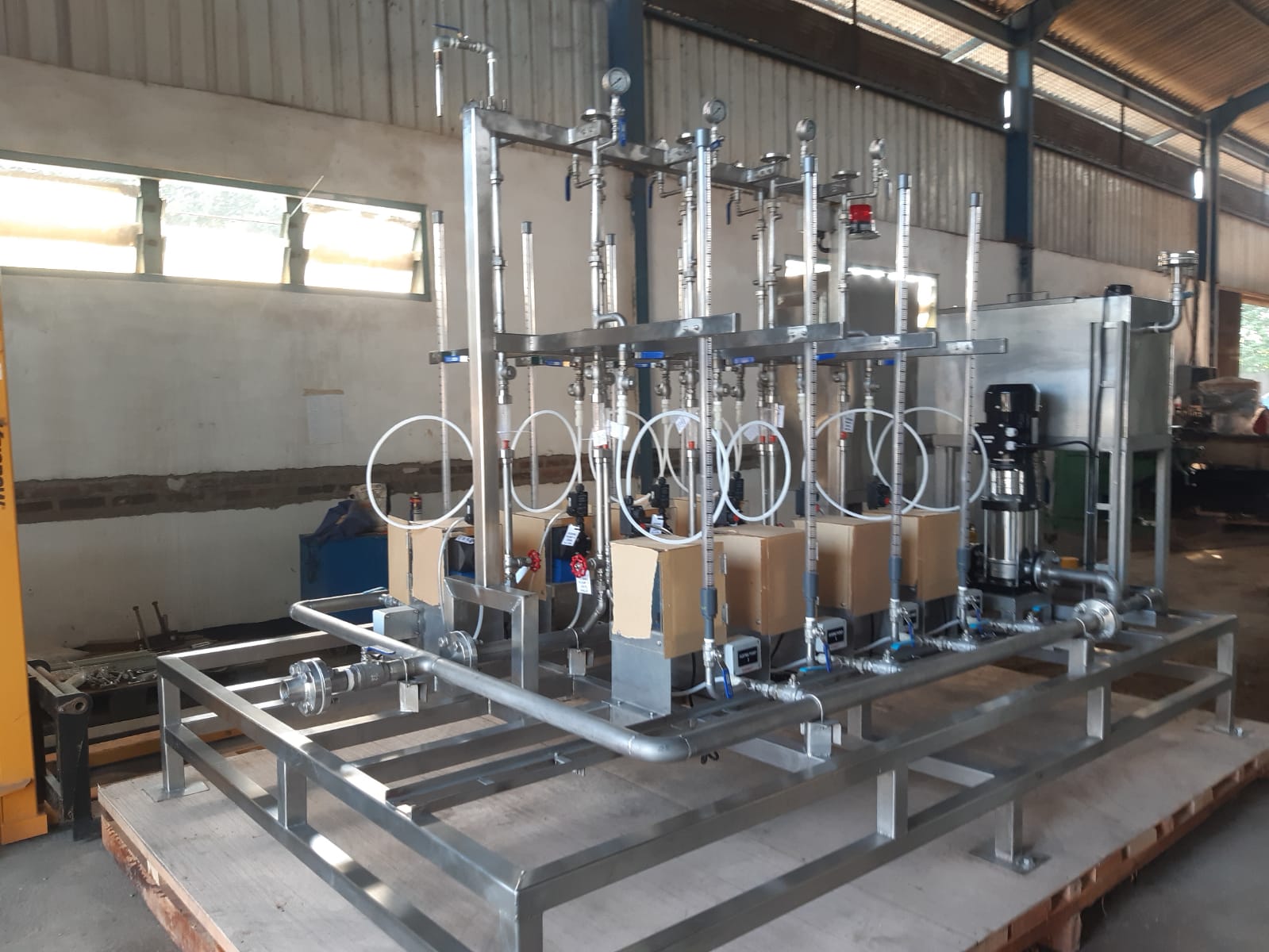 | Material Konstruksi Utama | Stainless Steel (Rangka, Perpipaan, Manifold, Katup) |